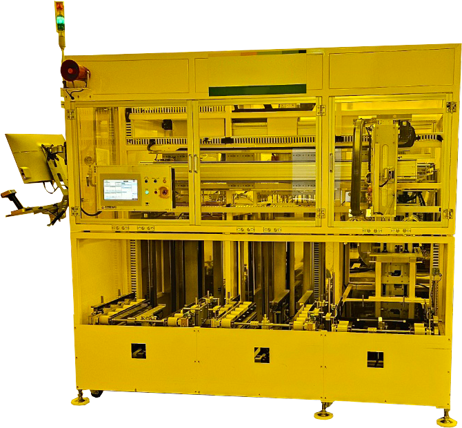 - TRAY형태의 용기를 투입하여 PCB 기판을 자동 투입하거나 수취하는 자동화 설비
